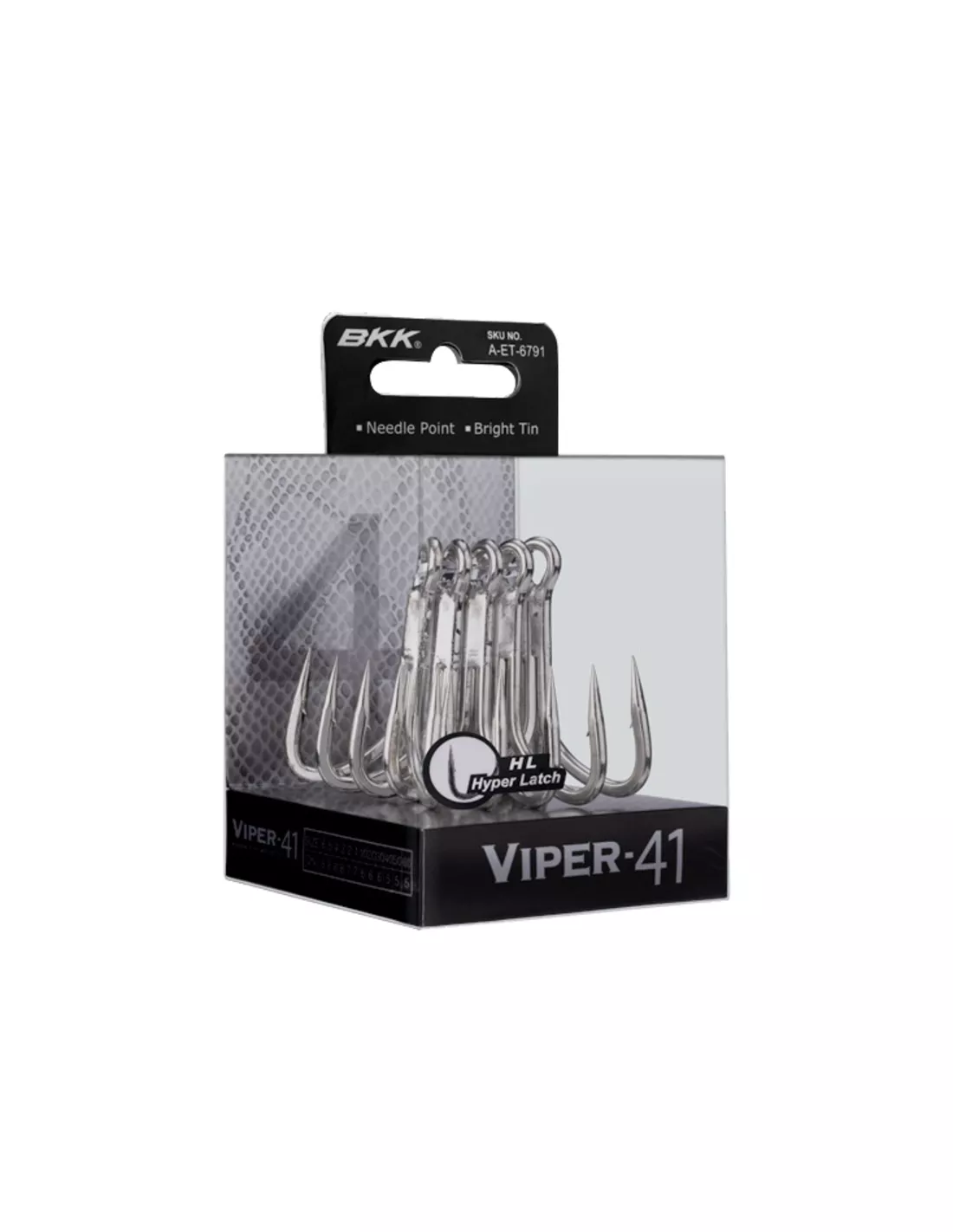 De Viper-41 is een sterke en glanzende 4xStrong dreg, ontworpen met lange en rechte haakpunten en een zeer agressieve bocht, ontwikkeld met het oog op topwatertechnieken.