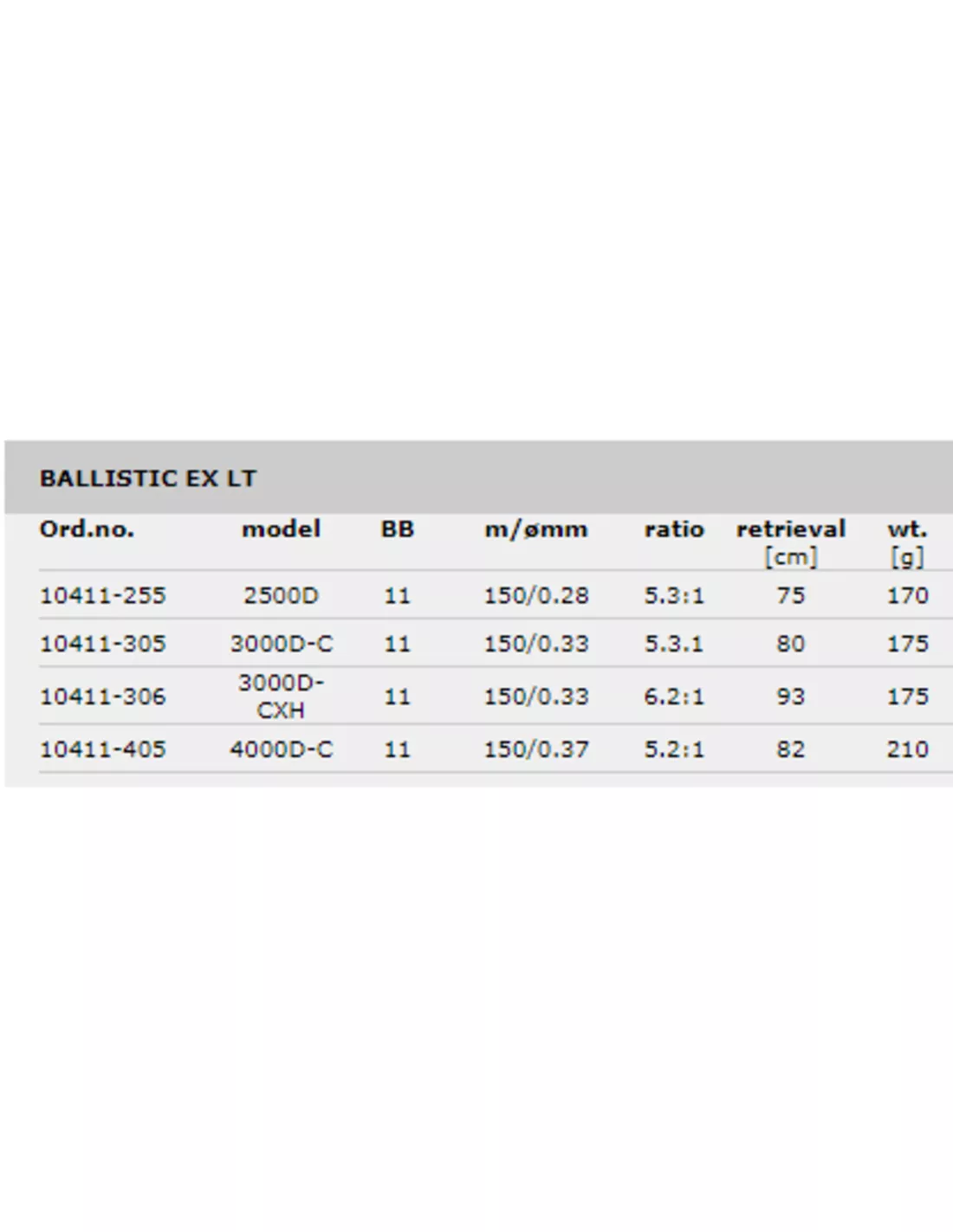 De Daiwa Ballistic EX LT is de doorontwikkelde en betere versie van de bekende Ballistic LT. De Ballistic spinmolen is zoutwaterbestendig en bijzonder licht. De vernieuwde versie is gemaakt middels het nieuwe Zaion V principe, dat voor een langere levensduur, lager eigen gewicht en hogere inhaalsnelheid zorgt. De Daiwa Ballistic EX LT heeft een zeer hoge dragpower.