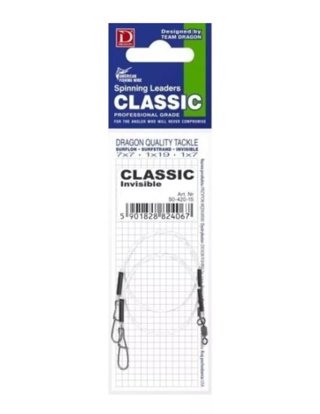 De Fluorcarbon leaders van Dragon hebben dezelfde lichtbreking als water. Vanwege deze eigenschap zijn ze onder water nagenoeg onzichtbaar. De Fluorcarbon leaders van Dragon zijn verkrijgbaar in verschillende lengte maten.