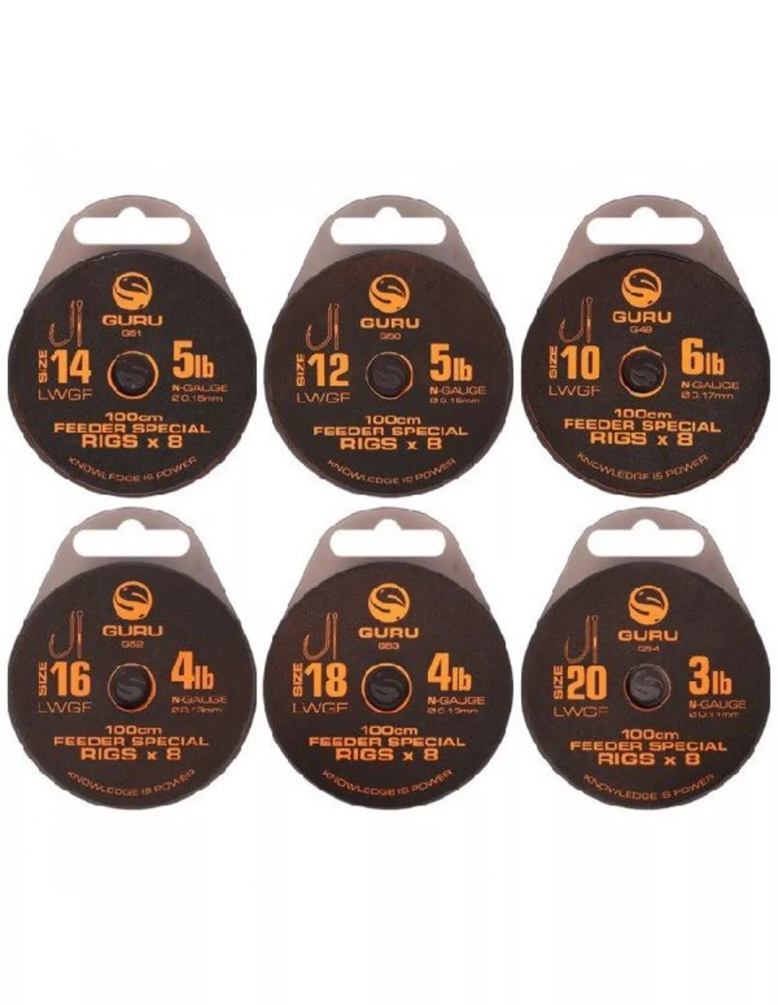 De Guru LWGF Feeder Rig 100cm. is een kant en klaar geknoopte onderlijn voor het feedervissen welke met absolute precisie geknoopt zijn en geleverd worden op een Guru Eva spool. Deze Eva spool past precies in de Rigbox en zijn dus gemakkelijk te vervoeren. De onderlijnen zijn geknoopt van N-gauge monofilament en voor zijn voorzien van de LWGF feederhaak welke is voorzien van een Black Nickle finsh waardoor deze zeer scherp is en blijft. Perfect in combinatie met Maden, Casters, Wormen en muggenlarven.Eigenschappen van de Guru LWGF Feeder Rig 100cm.- 100cm lang- Voorzien van Guru LWGF Feederhaak- Geknoopt op N-Gauge Monofilament-Geleverd op Eva Spool- 8 Onderlijnen per spoel- Guru LWGF Feeder Rig 100cm – Haakmaat: 10 – lijndikte 0.17mm – Guru LWGF Feeder Rig 100cm – Haakmaat: 12 – lijndikte 0.15mm- Guru LWGF Feeder Rig 100cm – Haakmaat: 14 – lijndikte 0.15mm- Guru LWGF Feeder Rig 100cm – Haakmaat: 16 – lijndikte 0.13mm- Guru LWGF Feeder Rig 100cm – Haakmaat: 18 – lijndikte 0.13mm- Guru LWGF Feeder Rig 100cm – Haakmaat: 20 – lijndikte 0.11mm