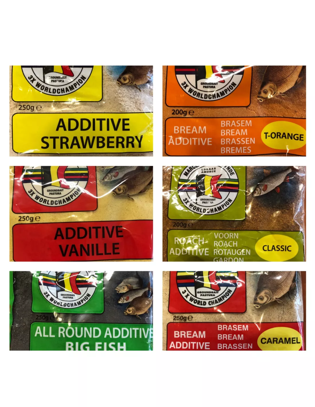 | Uitvoering | ADDITIVE CARAMEL BREAM (200 GRAM), ADDITIVE STRAWBERRY (200 GRAM), ADDITIVE ALLROUND BIG FISH (200 GRAM), ADDITIVE CLASSIC VOORN (200 GRAM), ADDITIVE CHOCOLAT VOORN (250 GRAM), ADDITIVE VANILLE (200GR), ADDITIVE KORIANDER (250 GRAM) |