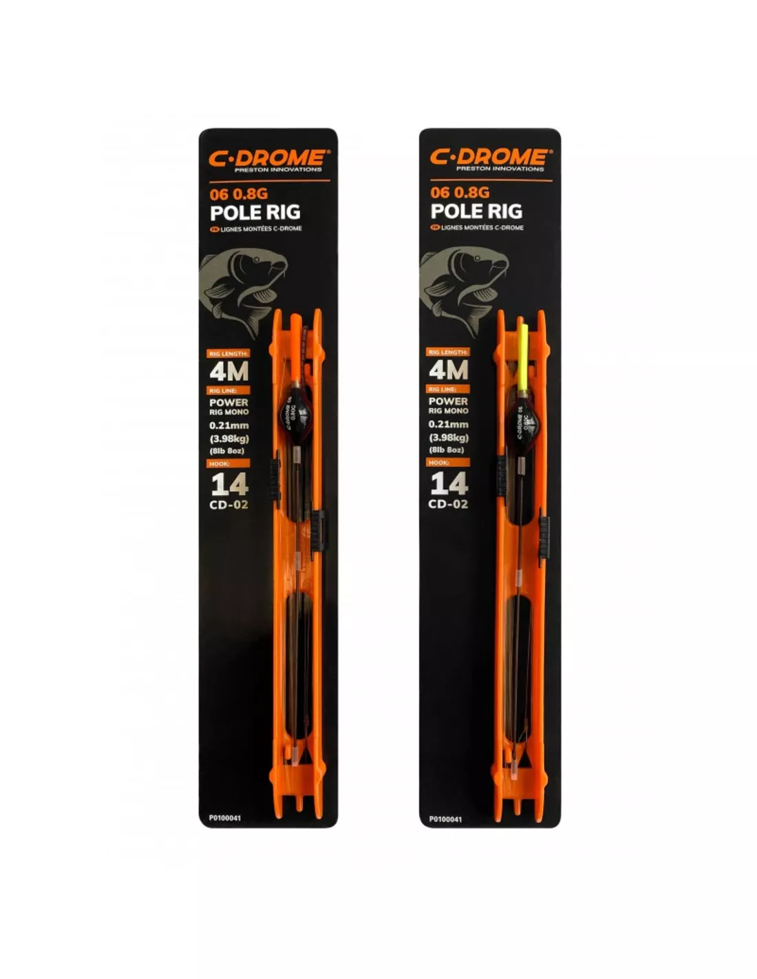 Drome Pole Rigs zijn vervaardigd met de beste C Drome componenten van hoge kwaliteit, speciaal ontworpen voor de vaste hengel. We hebben de populairste dobber modellen uit de C-DROME range (03, 05 en 06) alvast op tuigen gemaakt. Perfect voor het vissen op commercials. Deze robuuste dobbers zijn gemonteerd op 19 of een 21/00 Power Rig Mono nylon en gefinetuned met CD-02 haken en Stotz loodjes. Ieder tuigje heeft een lengte van 4 meter en is daarmee geschikt voor een breed scala aan omstandigheden. Even inkorten voor de perfecte lengte en klaar ben je. In verschillende maten en uitvoeringen te verkrijgen.