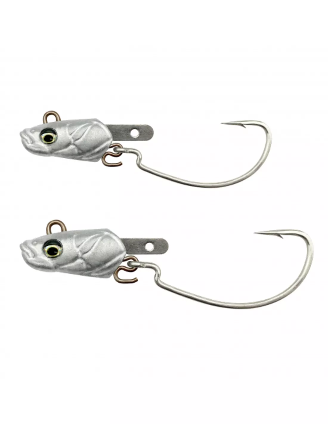 De speciaal ontworpen bij gebruik van de V2 weedless sandeels van Savage Gear. De “Roll and Rise” jig head zorgt voor een perfecte actie, waarbij het kunstaas bij het binnen draaien en bij het droppen een verleidelijke actie geeft. De Pro Peg-lichaamshouder maakt het mogelijk om het lichaam met een tandenstoker aan het hoofd te pinnen, waardoor een zeer eenvoudige en veilige grip ontstaat. De jigkop is ontworpen voor gebruik met weedless body’s en heeft een sterke klikverbinding voor de verwisselbare EWG-haak.